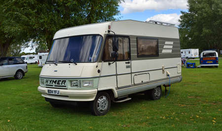ST NEOTS, CAMBRIDGESHIRE, ENGLAND - JULY 04, 2020: Hymer Camper Van parked in camping site.