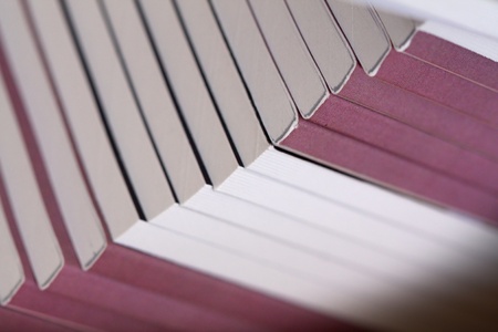 Close-up of book stack. Several colorful books with selective focus. Education concept