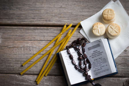 Prosfora from the Orthodox Church and a burning candle