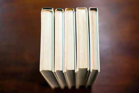 a few old and worn books together close-up