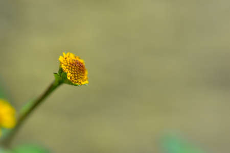 Common nipplewort in bloom close-up view with blurred green plants on background
