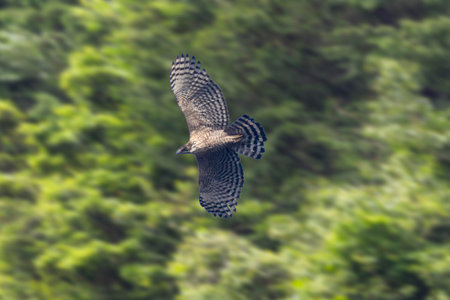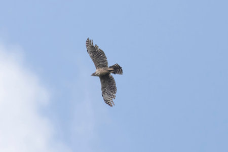 Mountain Hawk-eagle in flying in a blue sky background.