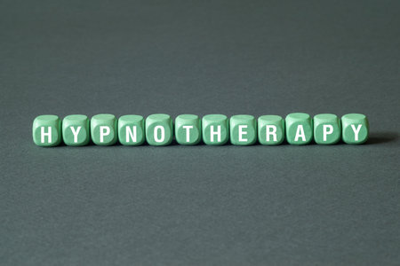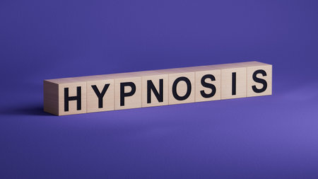 wooden cubes with text hypnosis. close up of wooden cubes.