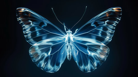 X-ray image of a butterfly on a black background. Anatomy of insects. Aesthetic nature concept. Generative AI.