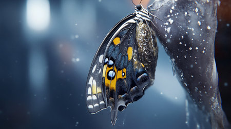 chrysalis splitting open with butterfly visible inside, created with generative ai