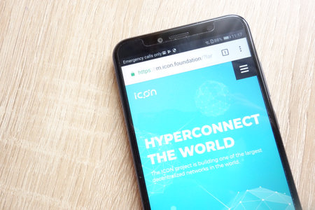KONSKIE, POLAND - JULY 01, 2018: ICON (ICX) cryptocurrency website is displayed on Huawei Y6 2018 smartphone