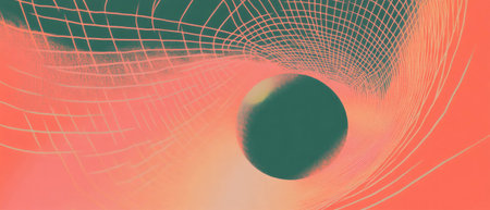 This artwork visually captivates with a glowing grid and a blue sphere, perfect for illustrating themes of technology, space, and digital innovation in a modern setting.