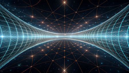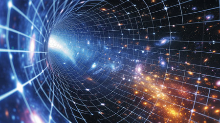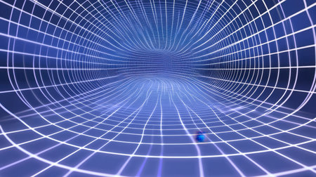Warped spacetime grid with stars and futuristic technology atmosphere rendering illustration