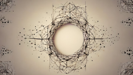 Central clear area in a hand-drawn grid with artistic banner overlay and dynamic background