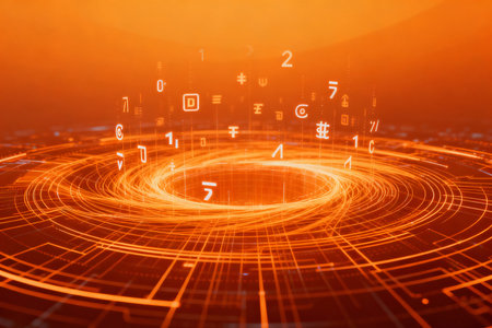 A vibrant, colorful vortex of mathematical formulas and symbols swirls through the darkness of space, creating a sense of...