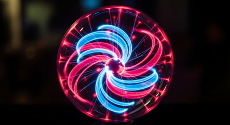 A crystal orb captures and refracts a chaotic symphony of vibrant light trails, creating a mesmerizing focal point.