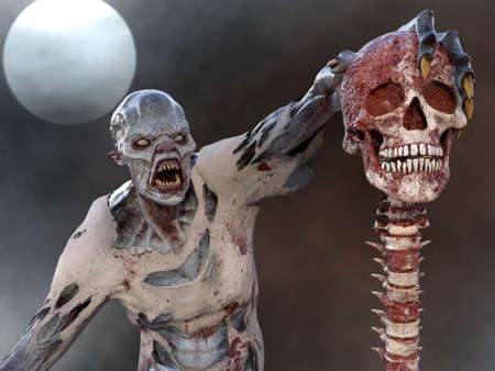 A horror concept of a scary portrait of a skull, demon figure. On a dark grunge background.