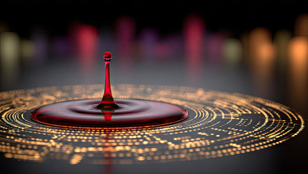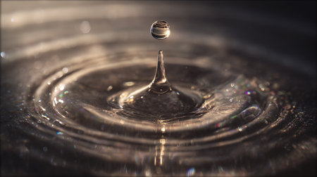 Close-up image capturing the dynamic splash of a water droplet hitting a still water surface