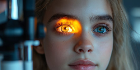 Young Girl Undergoing a Comprehensive Eye Exam with a Slit Lamp Close-Up on Ocular Health