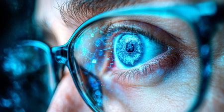 Cyber Reflection of Technology Industry on Man's Glasses AI Generated