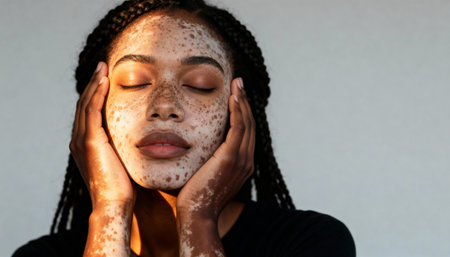 Young african american woman with vitiligo on her face