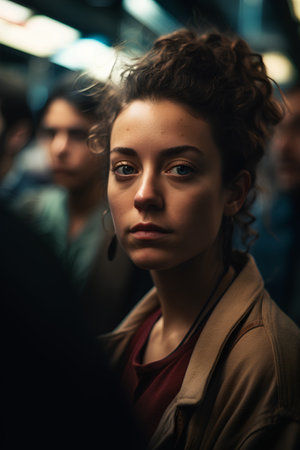 Portrait of a beautiful girl in a subway station, looking at the camera.