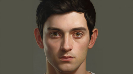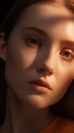 Portrait of a young woman with brown hair looking at camera generated by artificial intelligence