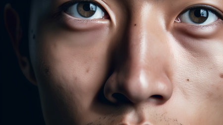 A young man is captured in a close-up shot, with an intense look on his partially visible face, emphasizing keen concentration and contemplation, likely absorbed in a thought-provoking activity or situation.