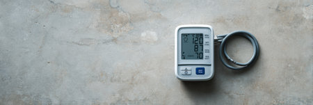 Blood pressure monitor is positioned on a neutral surface, clearly showing vital health readings relevant for monitoring cardiovascular wellness.