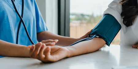 Blood pressure monitoring and checking by modern tool for heart health control.