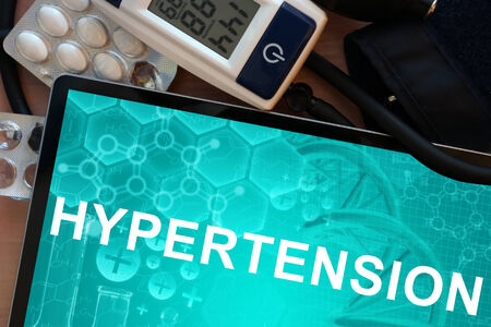 Tablet with the diagnosis hypertension and Electronic blood pressure monitor