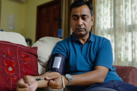 An Adult Woman is Checking Her Blood Pressure at Home for Routine Health Monitoring and Care.