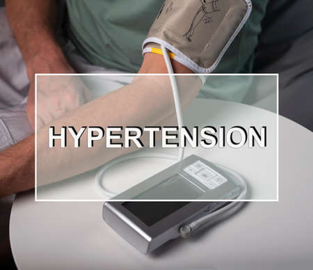 Electronic tonometer with an inscription hypertension. Medicine concept.