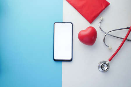 red heart with stethoscope and medical equipment isolated on white background , Health Care concept.