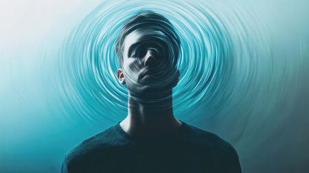 A person trapped in a never-ending cycle of thoughts, represented by swirling patterns and colors. Generative AI