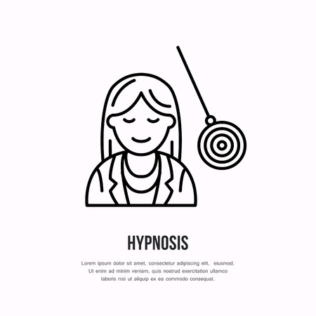 Vector line icon of happy woman on hypnotherapy.