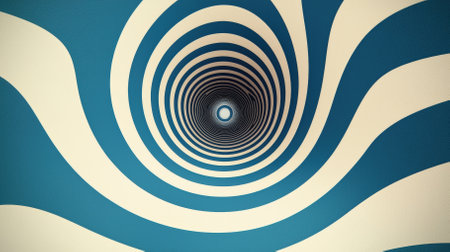 This mesmerizing abstract image features a hypnotic swirl pattern in blue and cream, creating a deep circular perspective. Ideal for art and design themes.