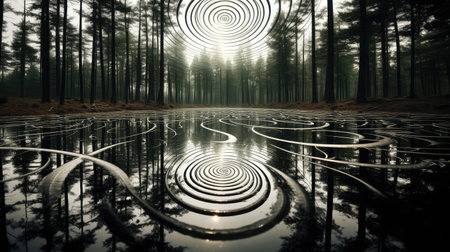 Circled patterns on a forest floor create an intriguing visual illusion and mood.