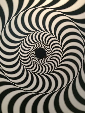 A graphic black-and-white spiral pattern creates a dizzying hypnotic effect, perfect for optical illusions, psychology, or retro design.