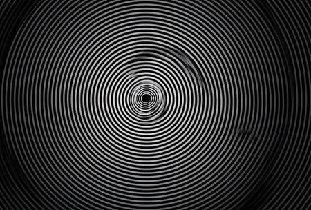 A graphic black-and-white spiral pattern creates a dizzying hypnotic effect, perfect for optical illusions, psychology, or retro design.