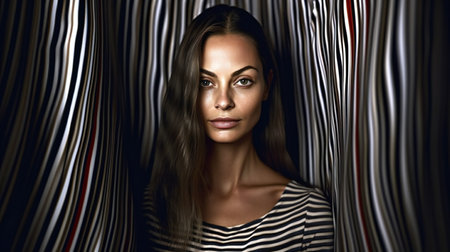 Portrait of a beautiful woman in a black and white striped background