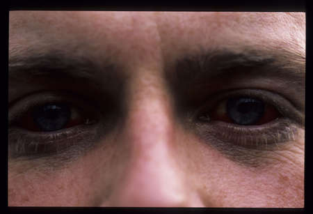 The yellow color of the male eye. Symptom of jaundice, hepatitis or problems with the gall bladder, gastrointestinal tract, liver.