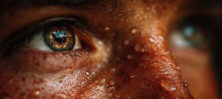 Person with sweat visible on the forehead and dripping down the face generative ai