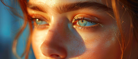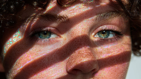 A captivating close-up portrait of a woman with glowing makeup, highlighting her vibrant and artistic expression.