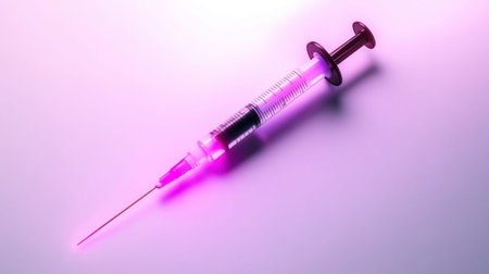 A close-up shot of a medical syringe filled with pink liquid, symbolizing healthcare, vaccination, and medical treatments.