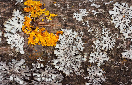 Lichens, Parmelia and Xanthoria parietina on the bark of a tree