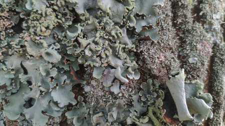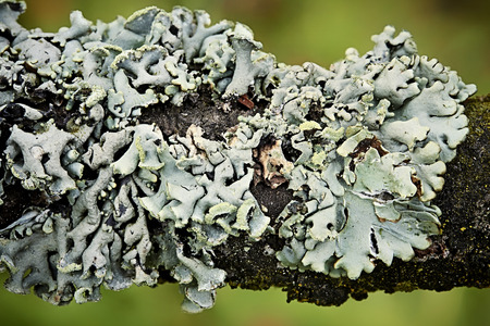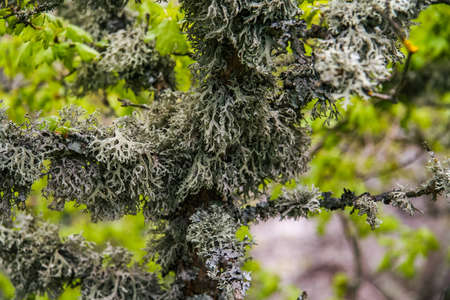 Lichen on tree branch. Lichen grows on rotten wood, nature