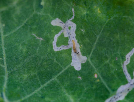 Macrophotography of an Ermine Moth (Yponomeuta plumbella)on a green leaf. Extremely close-up and details.
