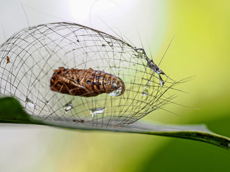 Caterpillars made cocoons on tree. Caterpillars ate all leaves in tree and twined branches of web in cocoon. Caterpillar of butterfly in cocoon on branches of perishing tree. Agricultural Pests