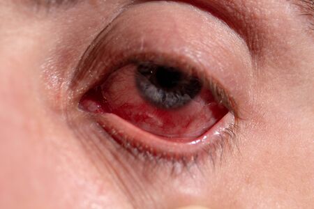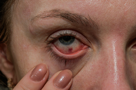Eye injury, young man with burst blood vessel in eye, fatigue, problems with blood vessels