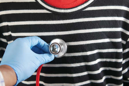 Doctor using a stethoscope checking body, close up