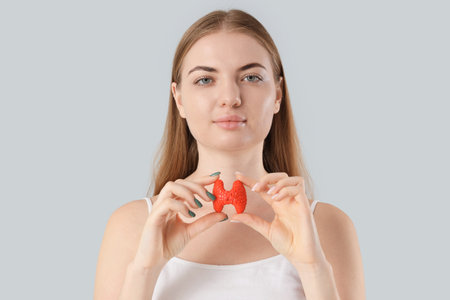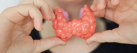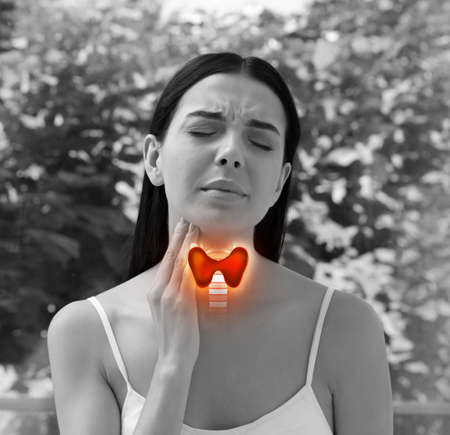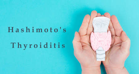 Hashimoto's thyroiditis, chronic lymphocytic disease, holding a thyroid organ, autoimmune symptoms, inflammation of the throat, health care