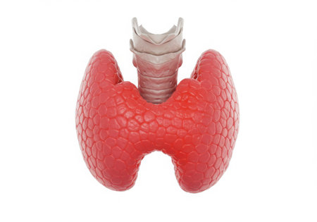 A detailed anatomical model of the human thyroid gland, a crucial endocrine organ, presented isolated on a clean white background.