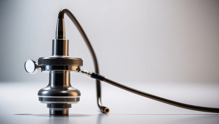 A detailed close-up photograph showcasing a metal object with intricately arranged wires, Close-up perspective of a laparoscope, AI Generated