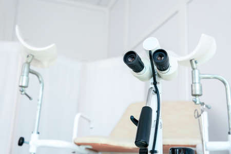 colposcope in gynecologist office. gynecological chair in hospital. Health checkup
